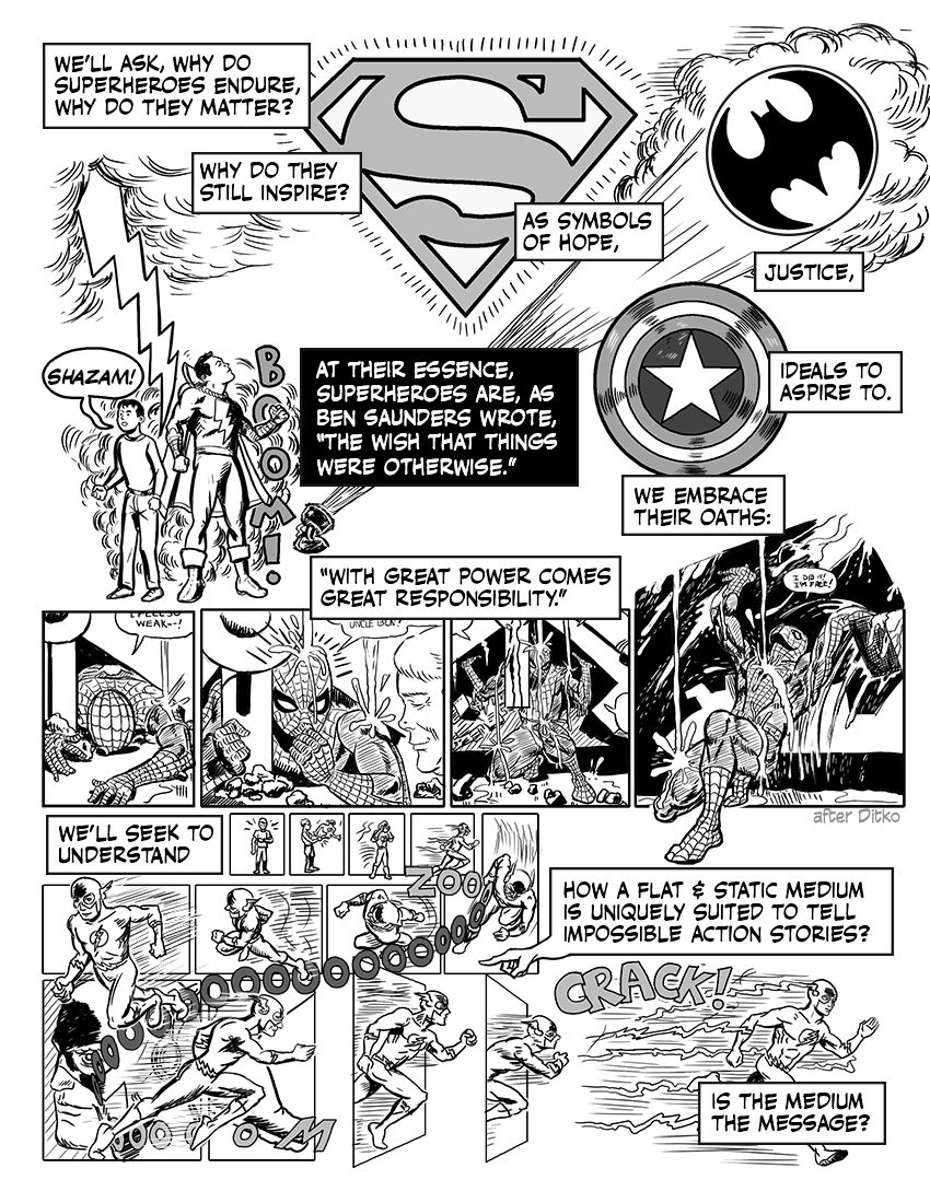 Nick Sousanis is an Eisner-winning comics author and an associate professor of Humanities & Liberal Studies at San Francisco State University, where he started and runs a Comics Studies program. He received his doctorate in education at Teachers College, Columbia University in 2014, where he wrote and drew his dissertation entirely in comic book form. Titled Unflattening, it argues for the importance of visual thinking in teaching and learning, and was published by Harvard University Press in 2015. Unflattening received the 2016 American Publishers Awards for Professional and Scholarly Excellence (PROSE Award) in Humanities, the Lynd Ward Prize for best Graphic Novel of 2015, and was nominated for an Eisner Award for Best Scholarly/Academic work. To date, Unflattening has been translated into French, Korean, Portuguese, Serbian, Polish, Italian, and Chinese (details here).